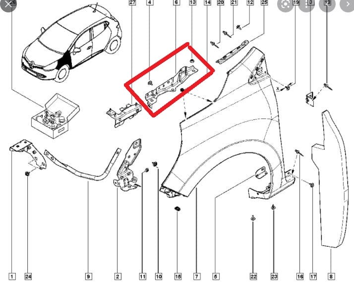 RENAULT CLIO- 4- SPORT TOURER- 13/16; FRONT FENDER SUPPORT LH (MIDDLE PART) (SKIN)